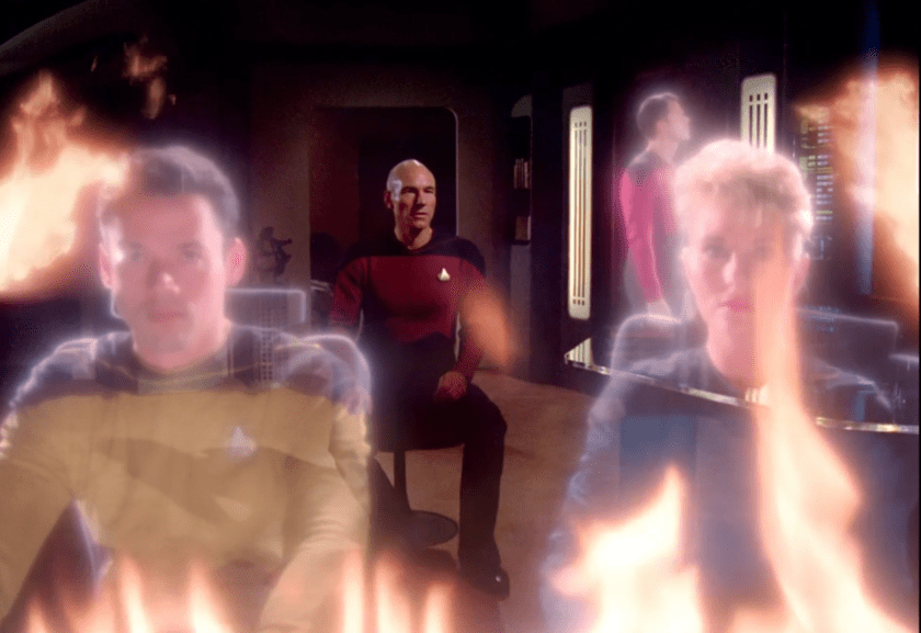 Eventually Riker gets through to him, and Bok’s first officer takes control from him and no one ends up dying, but its pretty close.