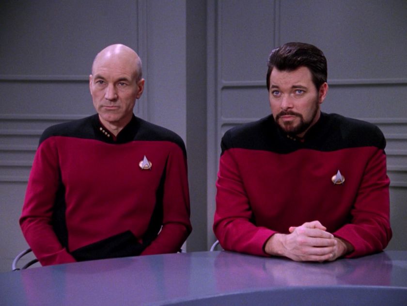 Time to sharpen our Federation law knowledge, because we have another episode that is basically a courtroom scene. This episode was supposedly influenced by the 1950 Japanese film Rashomon. The plot theme from the movie was various characters giving their versions of the story, and each story doesn’t fit the same narrative. In the episode, Riker is accused of killing Dr. Apgar on his station because he was infatuated with Apgar’s wife. The local authorities want him extradited to stand trial, but Picard asks that the investigation/interrogation happens on Enterprise, not willing to send his perhaps innocent first officer down to the planet without knowing the truth.