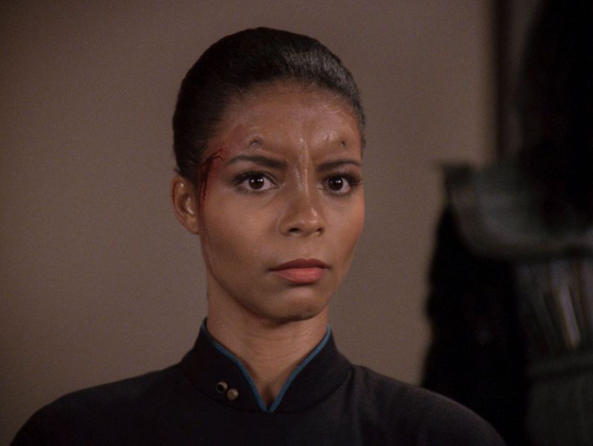 I wish they would try harder to give Geordi a romantic plot line where he doesn’t come off as…I don’t want to say predator, but he certainly has some questionable ideas about ethics when it comes to his love life. Aquiel, no matter her status in the investigation, is a victim of some assault, and Geordi doesn’t seem to have any qualms about seeking her out.