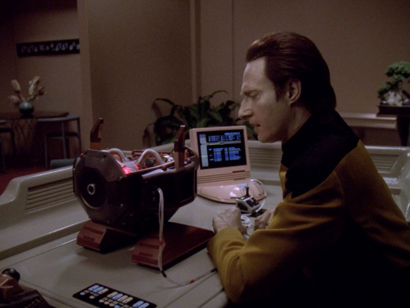 As you may figure, Lore is why we can’t have nice things. In this episode he is able to share emotions with his brother through a radio signal. The only issue is that he only shares anger. Data so enthralled with the idea of emotion goes with it, acting extremely out of character and rebelling in a very teenager fashion (as much as a 40ish year-old android can). The anger and hate fill him up and it takes a lot of work from Geordi and Picard to get through it all and activate his programing that lets him have morality.
