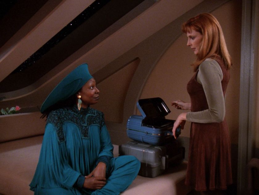 • Why is Deanna back in that uncomfortable body suit uniform.